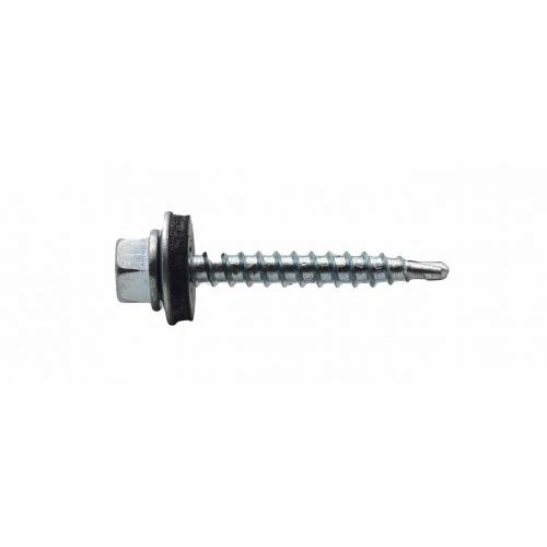 Саморез кровельный: головка - шестигранная с пресс-шайбой и прокладкой 4,8х35 графитово-серый. Предназначен для крепления кровельных материалов к металлическим и деревянным конструкциям с соблюдением гидроизоляции. Саморез комбинируется с пресс-шайбой и резиновой прокладкой EPDM диаметром 8,10 мм для кровельных работ.
