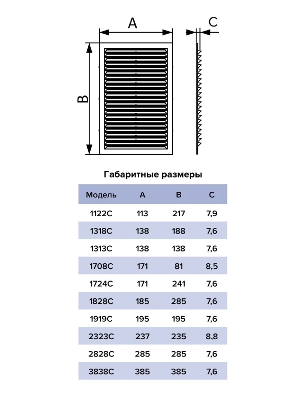 Пластиковые решетки с антимоскитной сеткой предназначены для установки внутри помещений. Такие решетки подойдут для монтажа, например, на кухне в квартире или частном доме, а также в офисе. Серия С имеет наименьшую толщину среди решеток торговой марки ERA — всего 8 мм. Доступна в базовом белом, бежевом и коричневом цветах. Некоторые модели выпускаются без антимоскитной сетки (1708С и 1122С). Крепится с помощью клея.