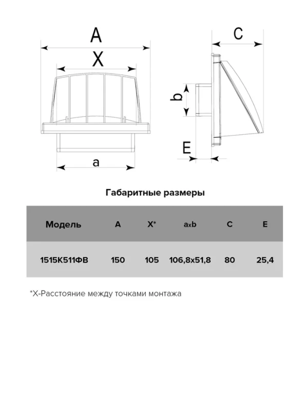 1515К511ФВ, Выход стенной вытяжной с обратным клапаном 150х150 с фланцем 55х110, ASA, бел ERA